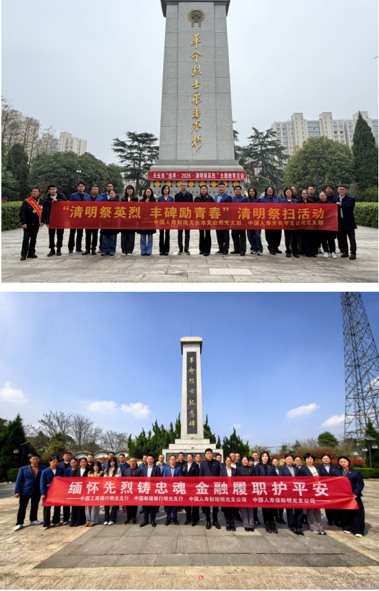 清明前夕,为赓续红色血脉、践行金融为民初心,中国人寿滁州分公司下辖天长支公司、明光支公司相继组织开展清明祭扫系列红色教育活动,以实际行动缅怀革命先烈,凝聚高质量发展奋进力量。