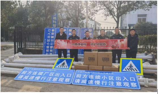 警保协同聚合力,硬件升级固防线。为从源头防范化解道路交通风险,平安财险滁州中心支公司主动对接滁州市公安局交通管理支队,深化警保联动协作机制,聚焦春节车流集中、事故易发的重点路段开展专项保障。2月11日,公司向滁州市公安局交通管理支队捐赠警示牌、警示灯等一批道路安全物资,精准补齐重点路段安全设施短板,有效提升道路警示防护能力,以硬件升级为春节出行安全筑牢基础。
