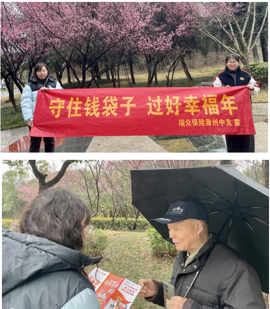 为进一步强化岁末年初“防非反诈”宣传工作,近日,瑞众保险滁州中支走进凤凰湖人民公园,开展户外金融宣教活动,将金融知识送到市民身边。