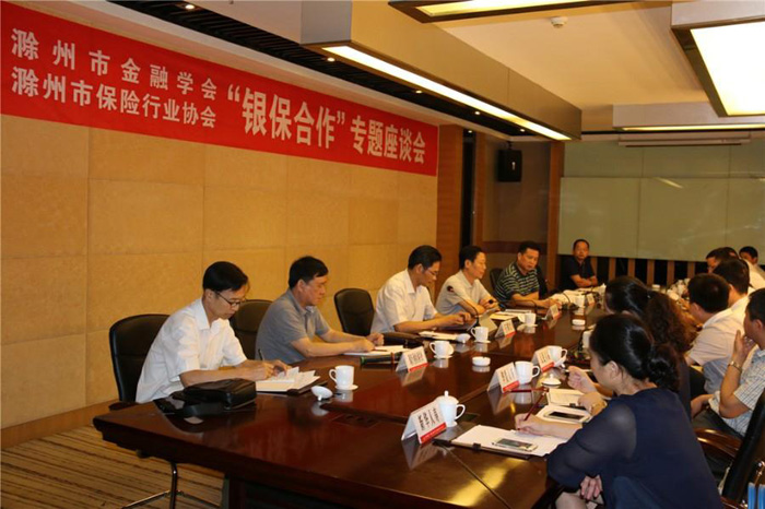 9月8日,滁州市金融学会、滁州市保险行业协会组织召开了“银保合作”专题座谈会。金融学会会长刘树德、副会长朱秋静;保险协会常务副会长王国文、秘书长李亚维参加会议。会议由朱秋静主持,王国文作交流点评,李亚维就“银保合作”问题进行分析并提出合作建议。部分银行、保险公司负责人参加座谈会。