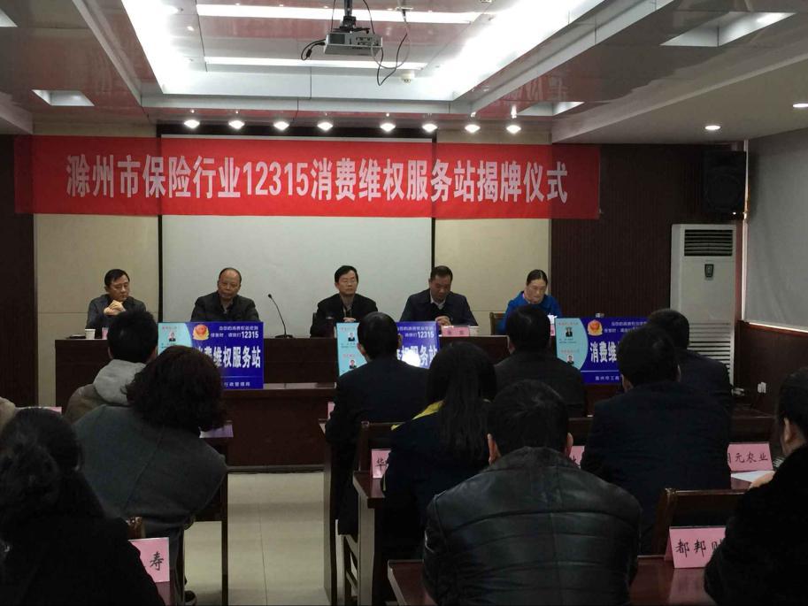 11月26日,滁州市保险行业协会、滁州市消费者协会在中国人寿滁州分公司,举行“12315”消费者维权服务站揭牌仪式,为人保财险滁州分公司、中国人寿滁州分公司“12315”消费者维权服务站挂牌。此次挂牌后,滁州市工商局“12315”热线接到的保险合同投诉,将直接交由两家保险机构处理,措标志着滁州市保险业消费维权新机制初步建立。驻滁29家保险公司负责人参加了揭牌仪式,并填写了挂牌申请表。安徽省工商局邢云峰处长、滁州市工商局张凯局长、滁州市保险协会李亚维秘书长到会并讲话,滁州市消费者协会唐凤阳秘书长主持了揭牌仪式。