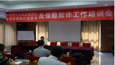 为进一步加强滁州市保险行业与公安经侦支队反保险欺诈工作合作,8月11日,滁州市公安分局经侦支队与滁州市保险行业协会联合举办反保险欺诈工作培训班,培训班就反保险欺诈的工作程序、诈骗证据收集、报案要件、协作方式等内容进行深入探讨和交流。滁州公安经侦支队副支队长杨华东及3名大队长、滁州保险协会秘书长李亚维及各保险公司负责查勘理赔工作的经理等50多人参加了这次培训。